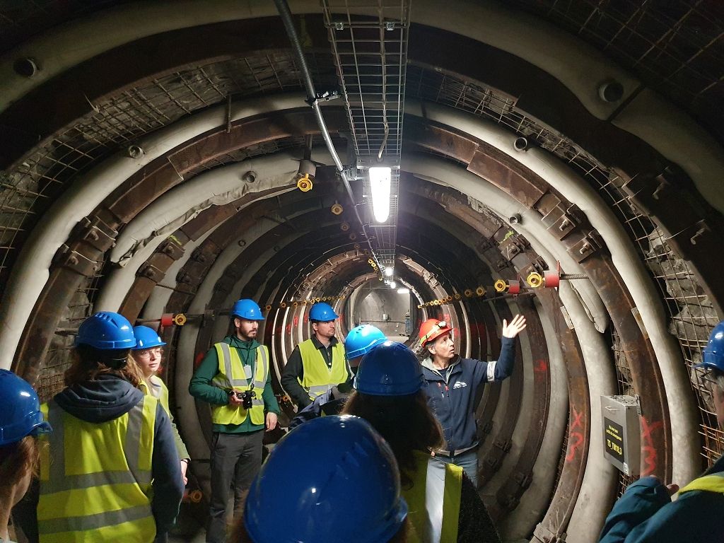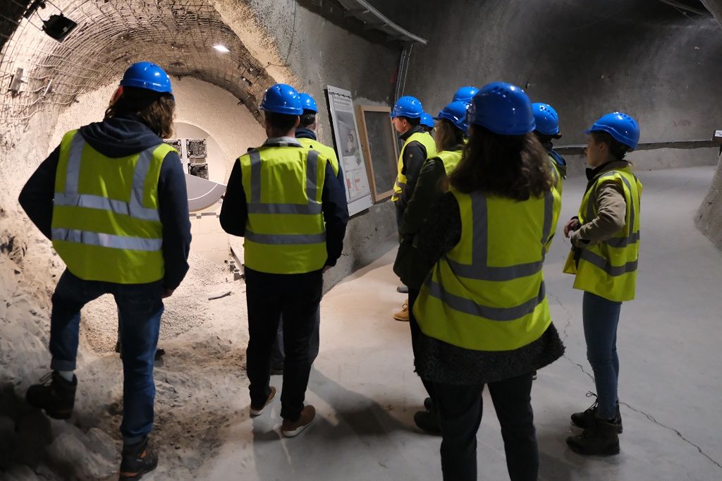 Wir werden durch das Felslabor und seine verschiedenen Experimente geführt. Hier stehen wir vor einem 1:1 Modell zur Einlagerung hoch radioaktiver Brennstäbe im zukünftigen Tiefenlager.